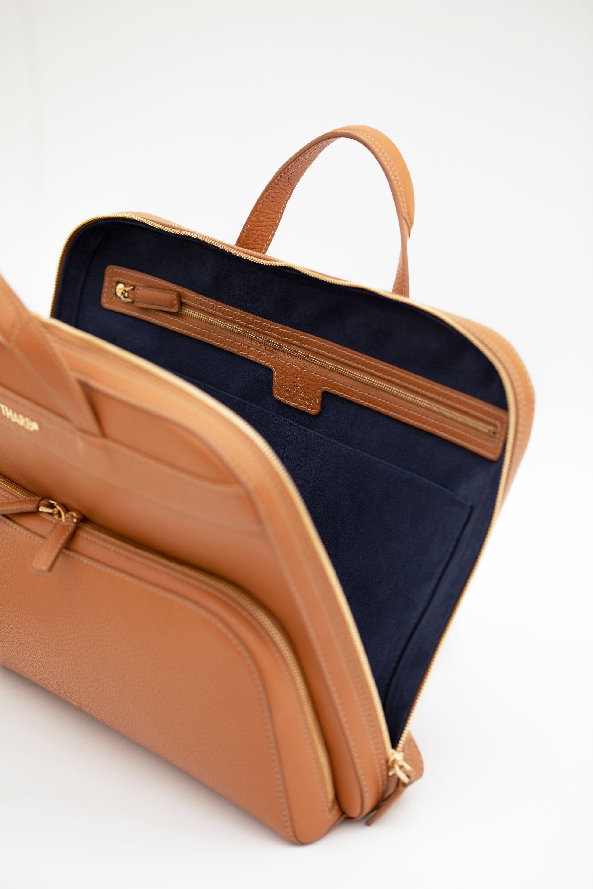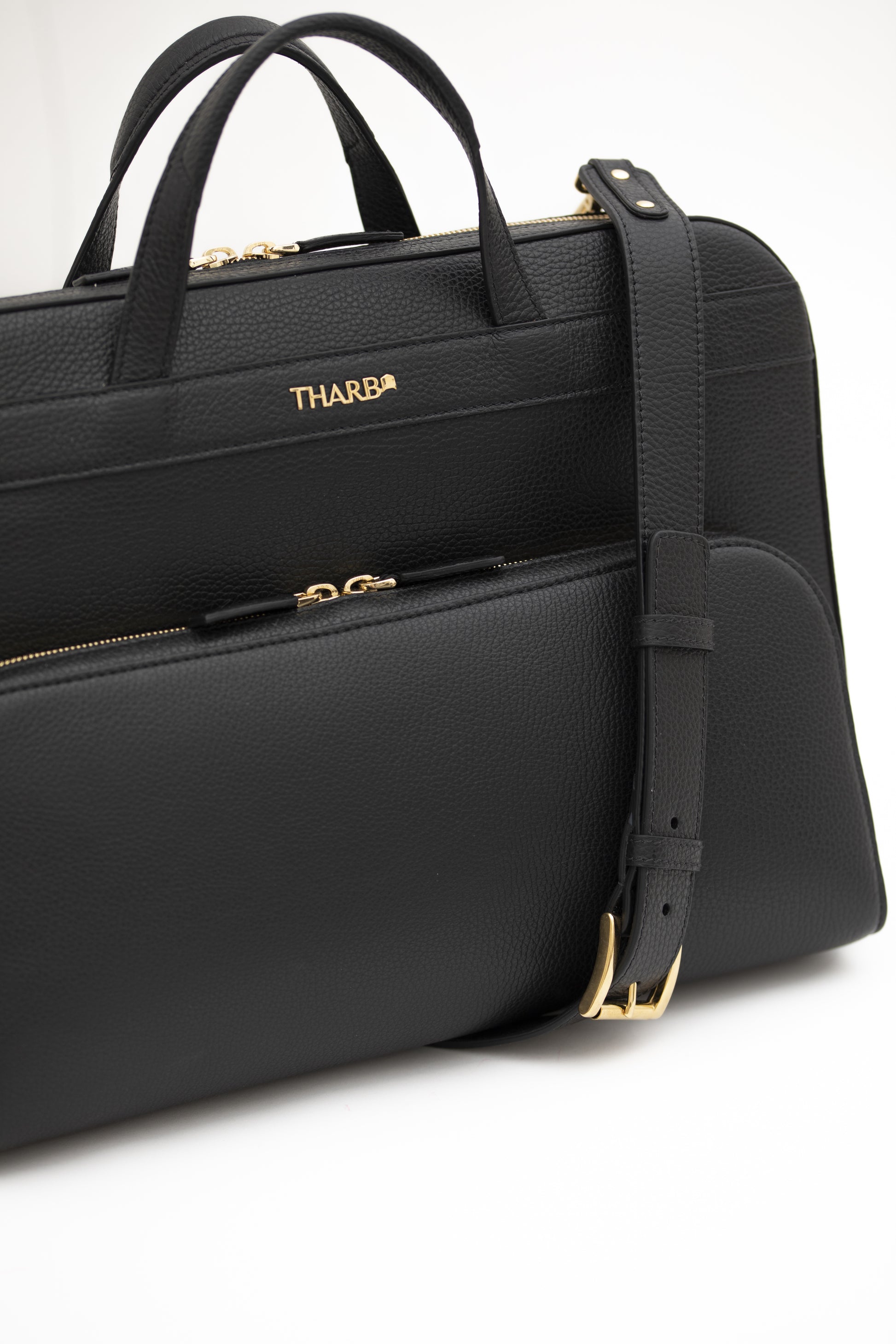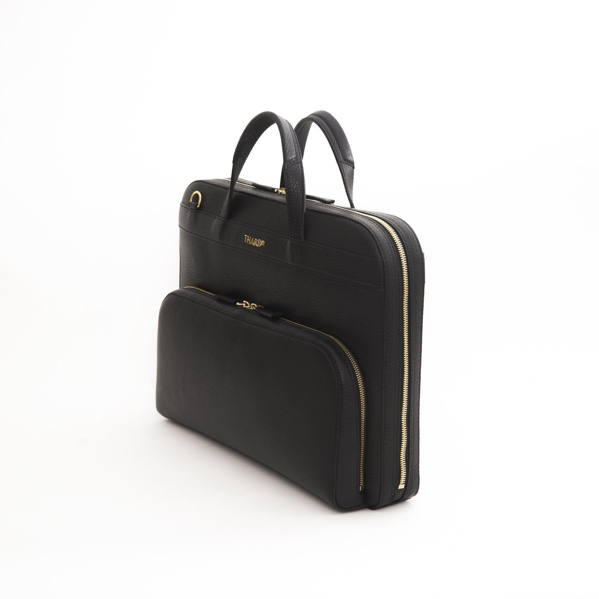 The Khalifa Briefcase is sleek and perfect for transporting your essentials to and from the office. Made with textured full-grain Tuscany leather. It has a slim profile yet is sizeable enough to house your laptop, business cards, notebooks and has internal sleeves to keep your pens and small gadgets in order. It also features an accompanying adjustable shoulder strap so you can carry it cross-body.